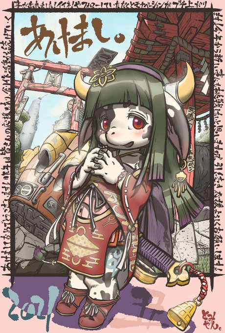 せっかく丑年なのに誰も牛の女の子年賀状も絵もくれなかってー でも今年みんなヤバい 衣織のイラスト